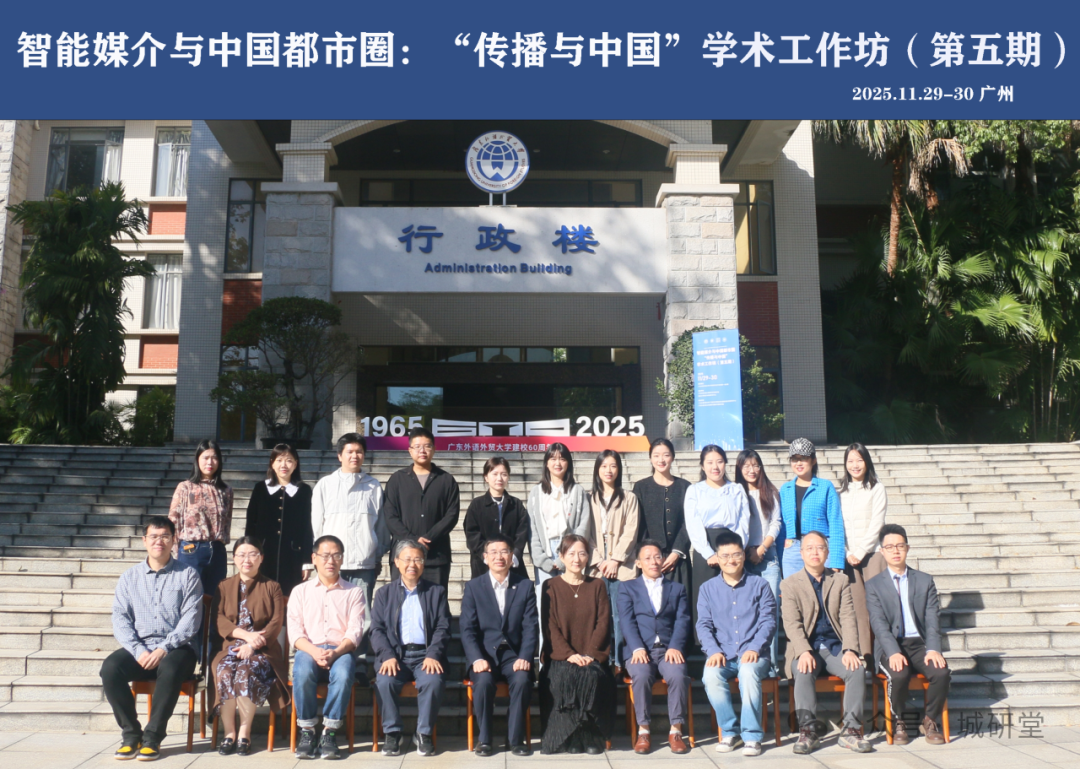 2025年11月29日至30日,由复旦大学信息与传播研究中心、广东外语外贸大学新闻与传播学院、广东外语外贸大学广州城市舆情治理与国际形象传播研究中心、广东外语外贸大学阐释与国际传播研究院联合主办的第五期“传播与中国”学术工作坊——“智能媒介与中国都市圈”在广东外语外贸大学(大学城校区)顺利举行。2018年1月,首届“传播与中国”学术工作坊曾于广东外语外贸大学(白云山校区)举办,暌违7年,工作坊再度回到广外。此次“重逢”是复旦大学信息与传播研究中心与广东外语外贸大学广州城市舆情治理与国际形象传播研究中心在城市传播、智能媒介等议题上进一步推进学术协作、培育青年人才的延续,也为中国都市圈发展与传播学本土化创新注入了新的学术动能。